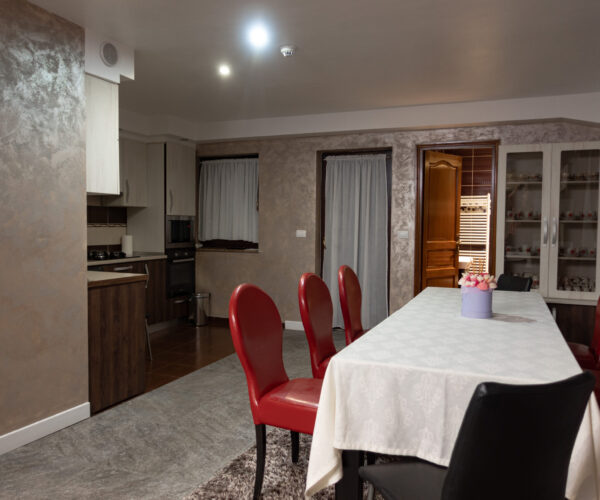 Fie că vrei să îți prepari o cafea dimineața privind peisajul montan, fie că îți dorești o cină tradițională gătită împreună cu cei dragi, bucătăria comună a pensiunii este locul potrivit.